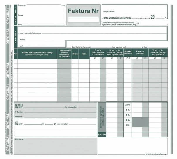 seria: Faktura VAT brutto 2/3 A4, 80 kartek,o+1kopia