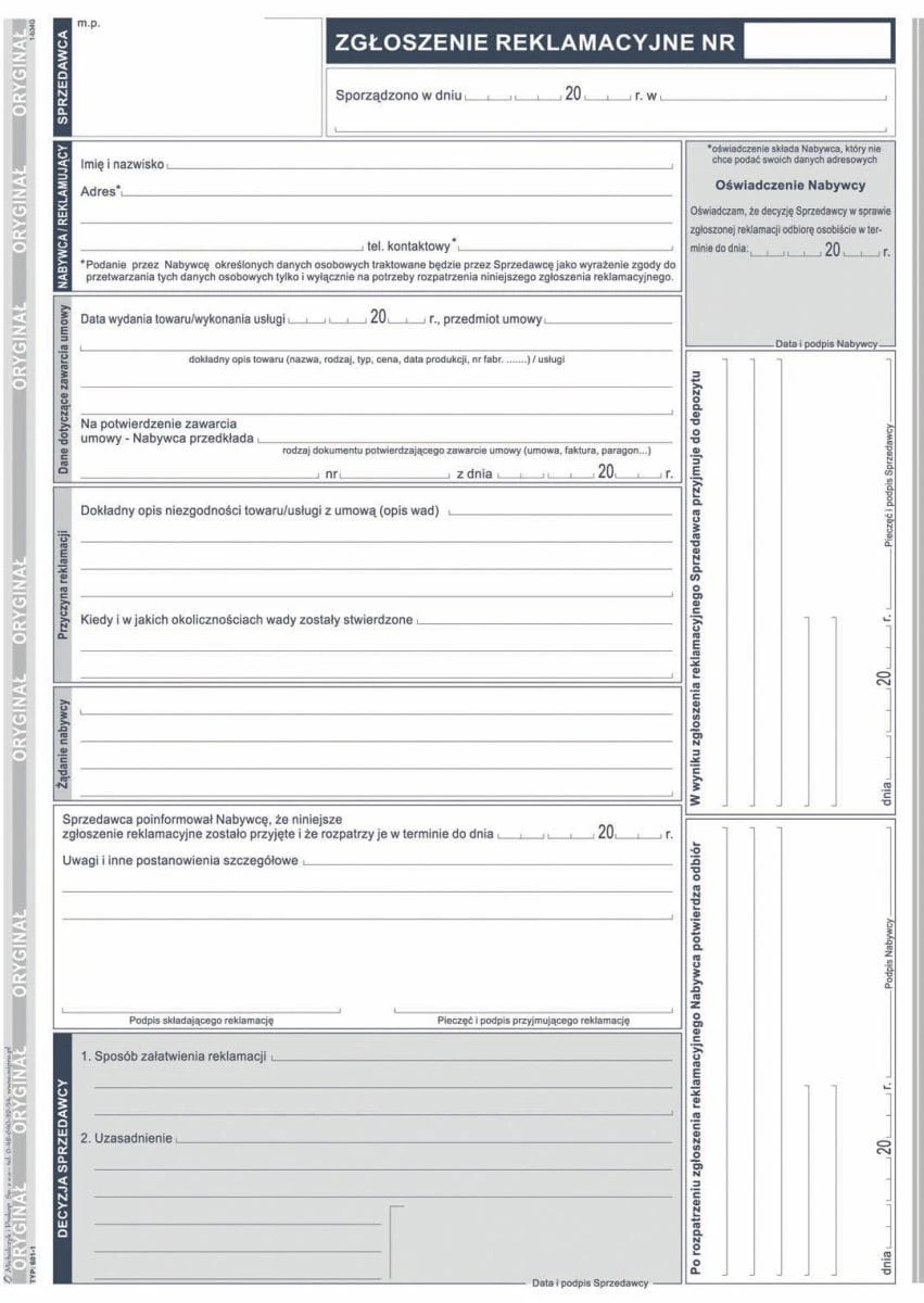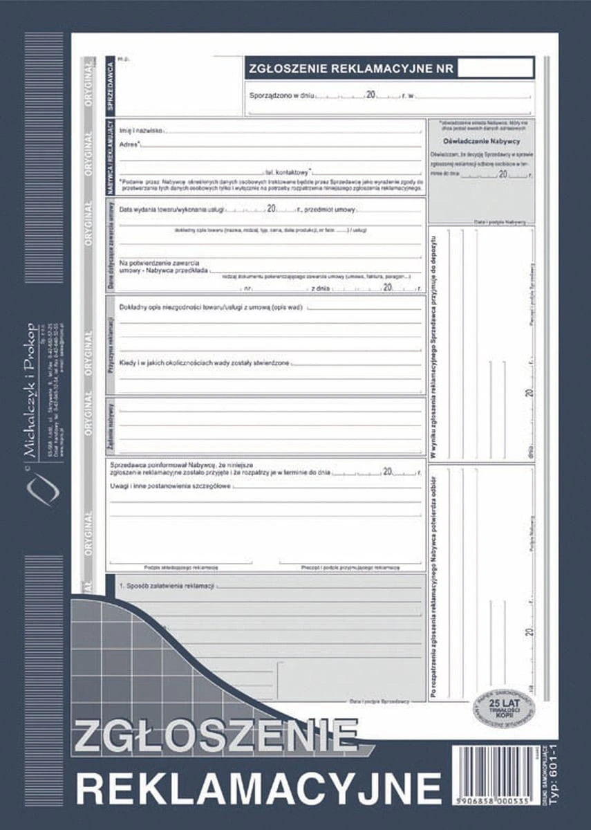 Druk offsetowy A4 Zgłoszenie reklamacji 40k. Michalczyk i Prokop (601-1)