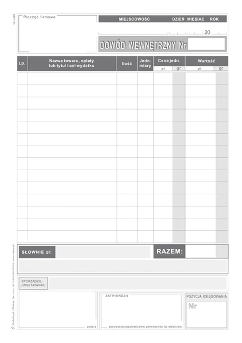 Dowody wewnętrzne EAN: 5906858001105Format: A5ilość kartek: 40Kod Producenta: K-12seria: Dowód wewnętrzny A5.