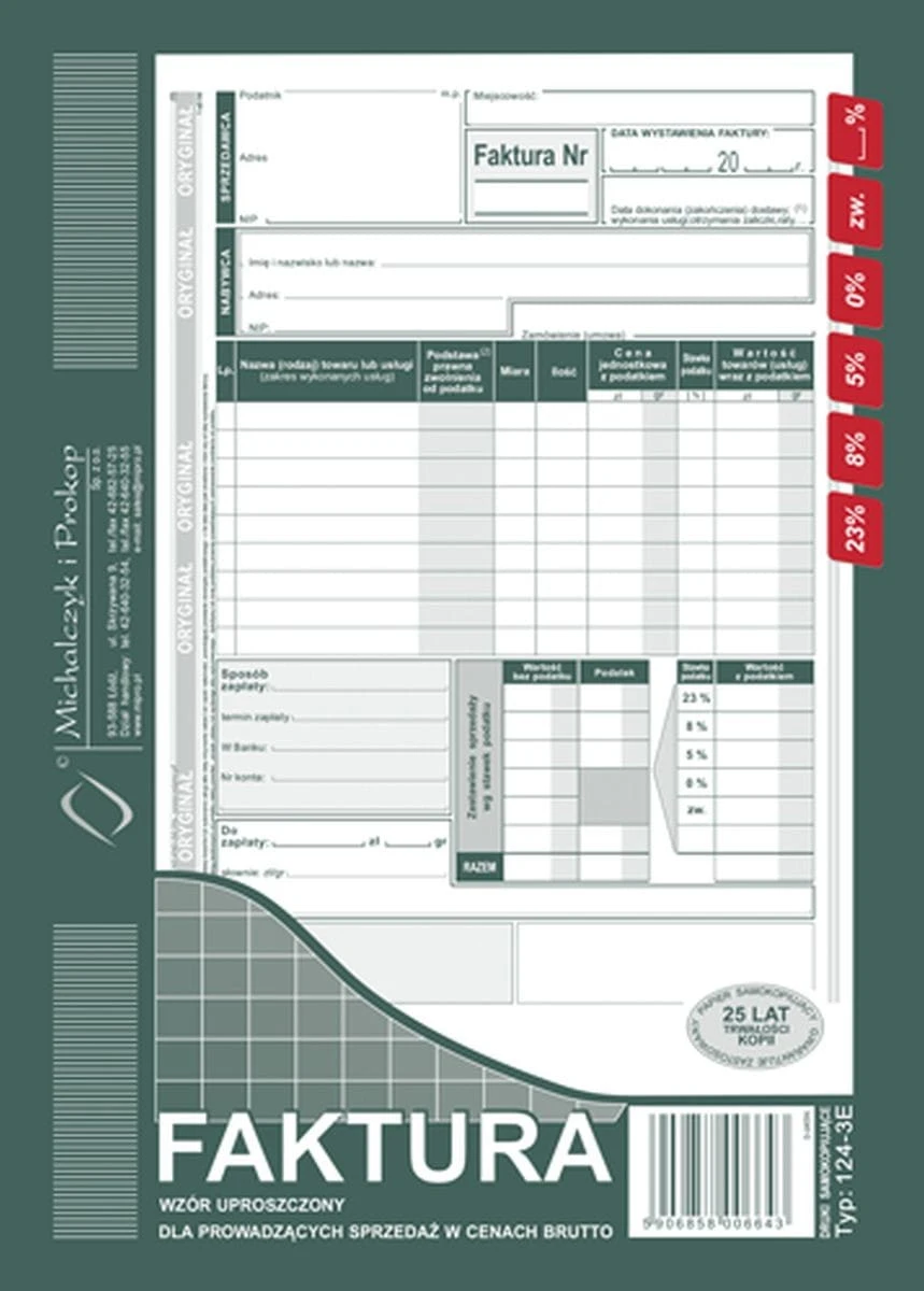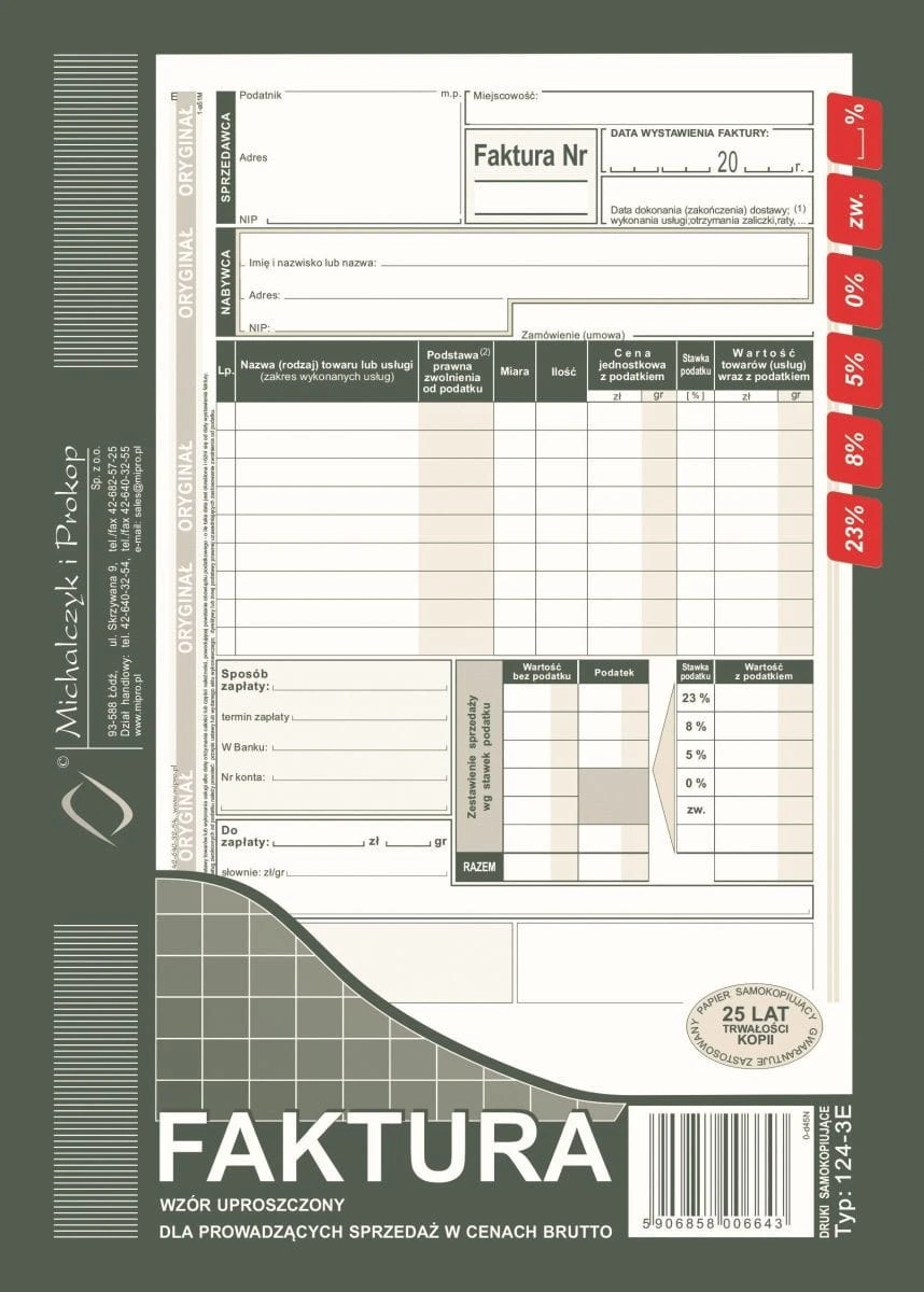 Druk offsetowy A5 Faktura VAT brutto 80k. Michalczyk i Prokop (124-3E)