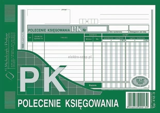 Polecenie księgowania EAN: 5906858000139Format: A5ilość kartek: 80Kod Producenta: 412-3seria: S o/1k.