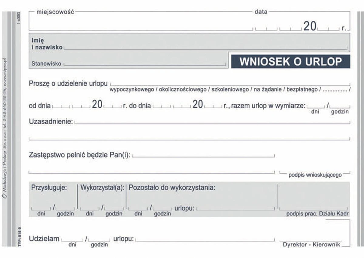 Druk offsetowy A6 Wniosek o urlop 40k. Michalczyk i Prokop (515-5)