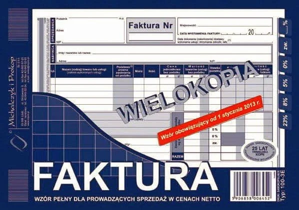 Druk samokopiujący A5 Faktura VAT netto pełna 80k. Michalczyk i Prokop (100-3E)