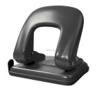 Metalowy dziurkacz w matowej obudowie. Posiada blokadę dźwigni, wskaźnik środka strony i ogranicznik formatu.
