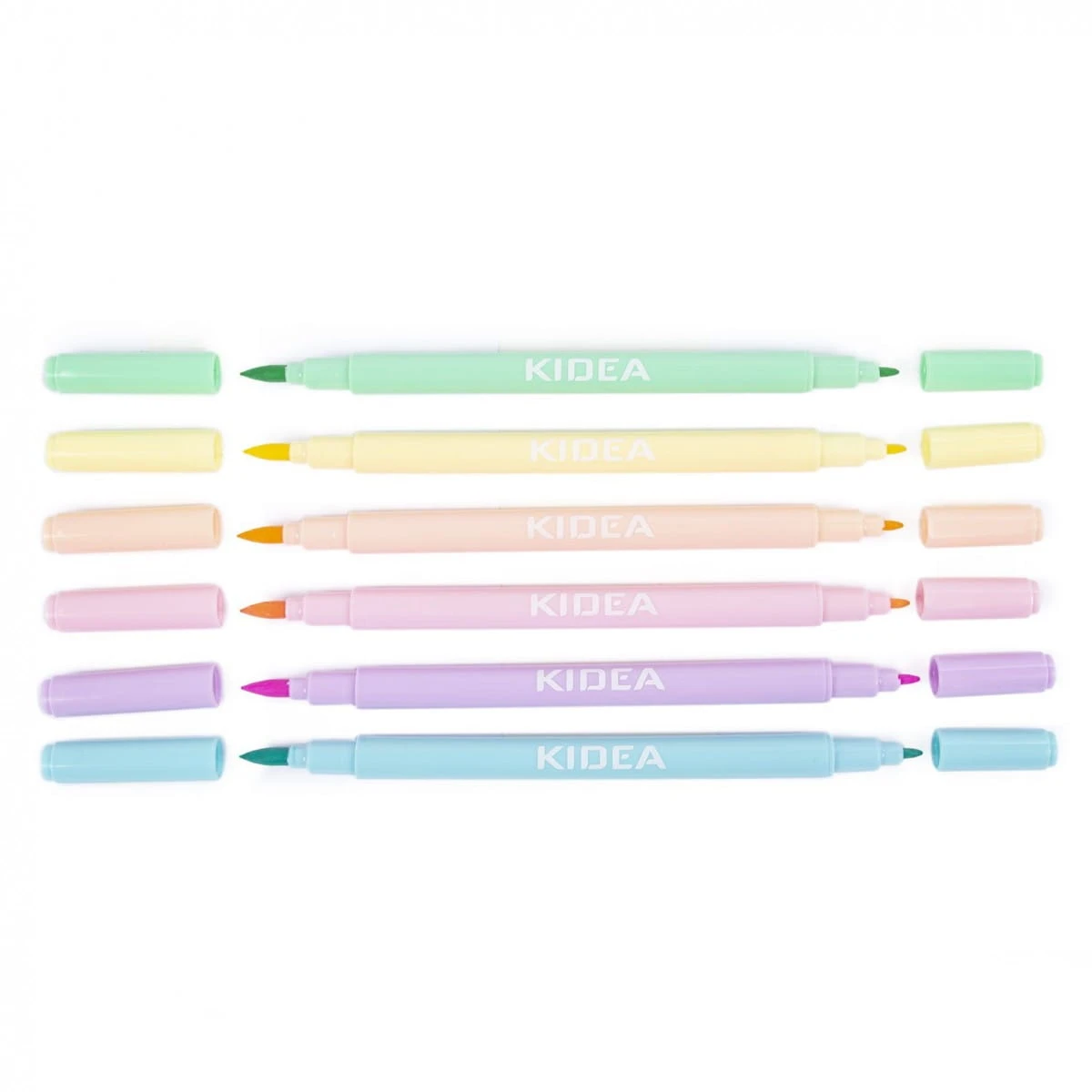Zdecydowanie pokochaliście pastelową kolekcję KIDEA, a więc czas przedstawić Wam naszą kolejną NOWOŚĆ! Zestaw 6 dwustronnych flamastrów w delikatnych pastelowych kolorach. Dwie końcówki o różnych formach, pozwolą na uzyskanie kresek o rozmaitych grubościach.