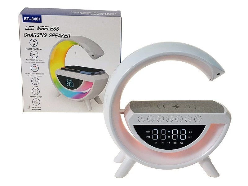 głośnik z zegarem, 24x21x9cm, Bluetooth, funkcja indukcyjnego ładowania telefonu; 24x24x9cm, Box EAN: 5901271617599Kod Producenta: 617599seria: funkcja indukcyjnego ładowania telefonu.