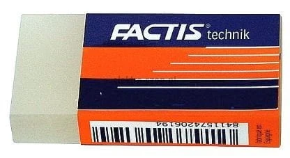 transparentna, techniczna guma plastikowa do kalki technicznej, usuwa ołówek nie naruszając tuszu, lekko zmoczona usuwa tusz z kalek poliestrowych, nie tworzy wiór, uniwersalna, posiada indywidualny kod kreskowy, wymiary: 50x23,5x9,5 mm, produkcja : Factis, Hiszpania EAN: 8414034211127Kolekcja: TK-20seria: polimerowaTyp: do ołówka.