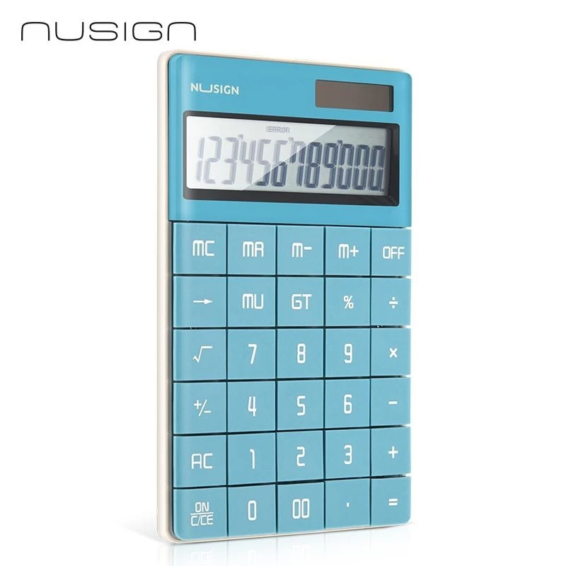 Kalkulator ENS041 Nusign wyposażony jest w 12-cyfrowy, panoramiczny wyświetlacz i elegancką, płaską konstrukcję przycisków zapewniającą płynne i wydajne wprowadzanie danych. Zasilany zarówno energią słoneczną, jak i baterią, zawiera silikonową podkładkę antypoślizgową zapewniającą stabilne użytkowanie - idealny do domu, szkoły lub biura.