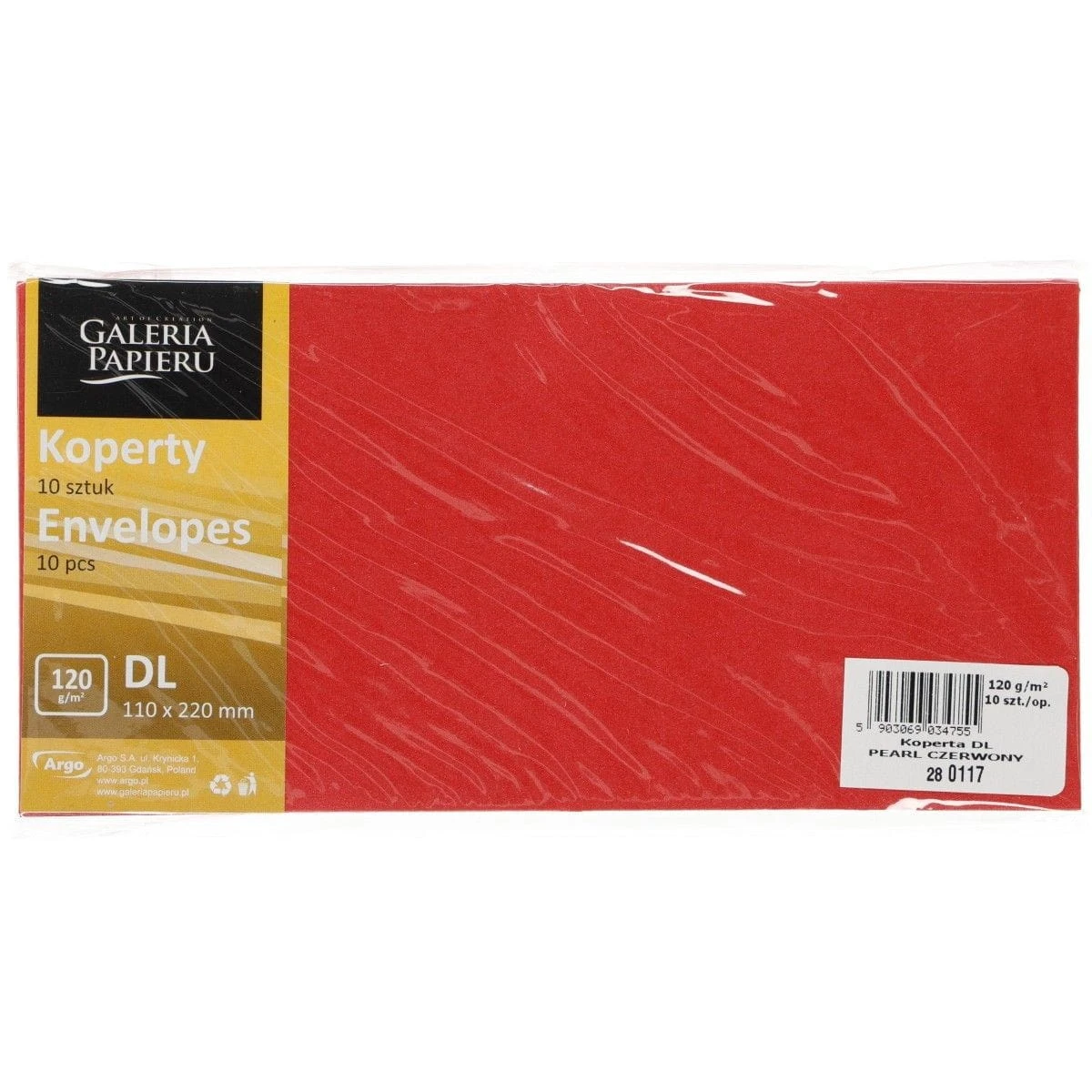 Koperta Pearl, format: DL (110 x 220mm), gramatura: 120g/m2, ilość: 10 sztuk w opakowaniu, kolor : czerwony, z paskiem samoprzylepnym, EAN: 5903069034755Format: DLIlość: 10Kod Producenta: 280117Kolor: czerwonawymiar1 [mm]: 110wymiar2 [mm]: 220.