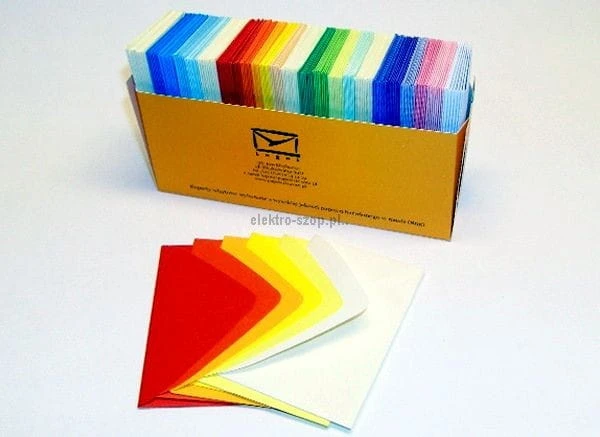 -Koperty z papieru 80 g wysokiej jakości, barwionego w masie-W środku koperty bilecik wizytowy-Wymiar koperty - 10,2 x 5,8 cm EAN: 5906272000173Ilość: 200Kolor: różneseria: wizytowawymiar1 [mm]: 102wymiar2 [mm]: 58.