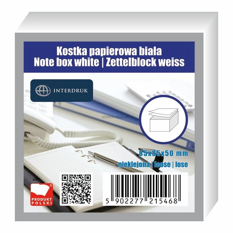 Kostka papierowa biały [mm:] 85x85x 50 Interdruk (KOSPAPNK5)