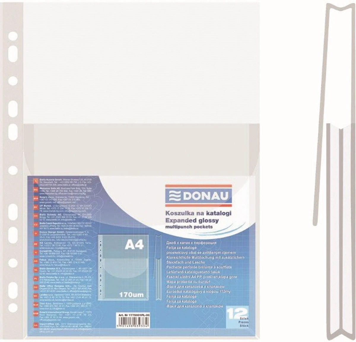 Koszulki na dokumenty krystaliczne A4 kolor: przezroczysty górna klapka 170 mic. Donau (1775001PL-00)
