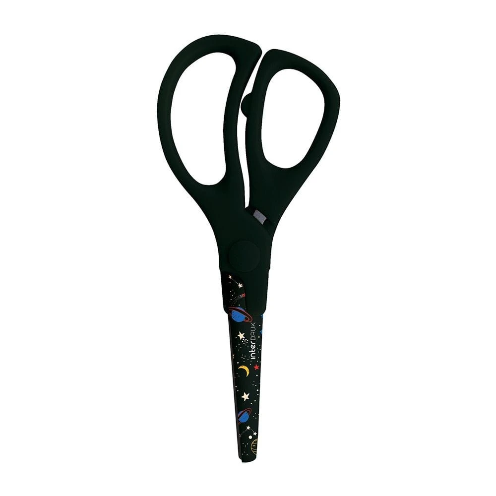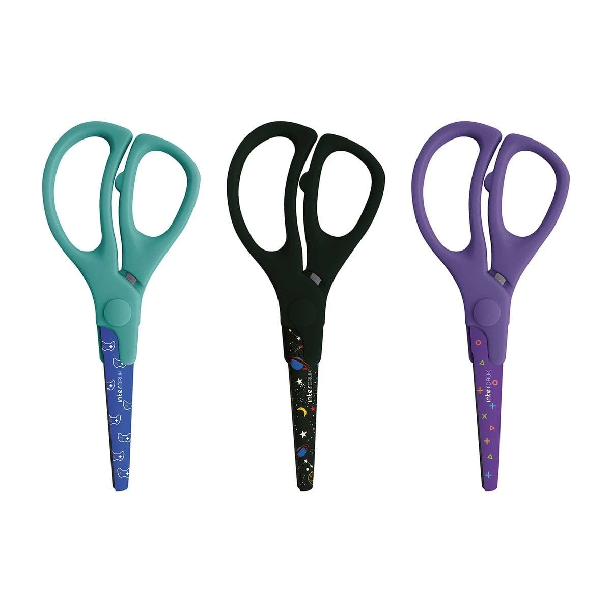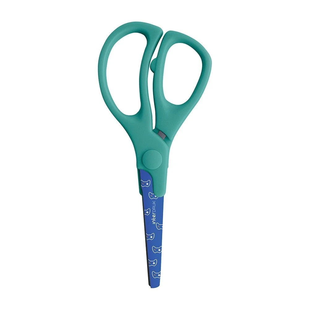 Nożyczki o długości 13 cm. Zaokrąglone, bezpieczne ostrze ze stali nierdzewnej z kolorowym nadrukiem.