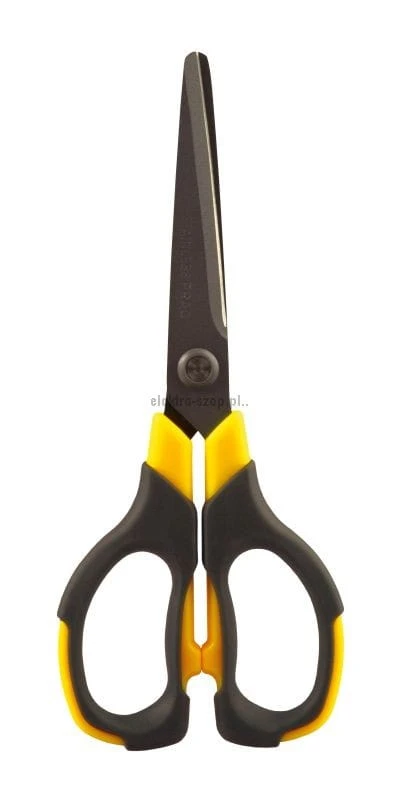 Nożyczki wykonane ze stali nierdzewnej. Ostrze pokryte fluorem odporne na przywieranie kleju oraz taśmy klejącej.