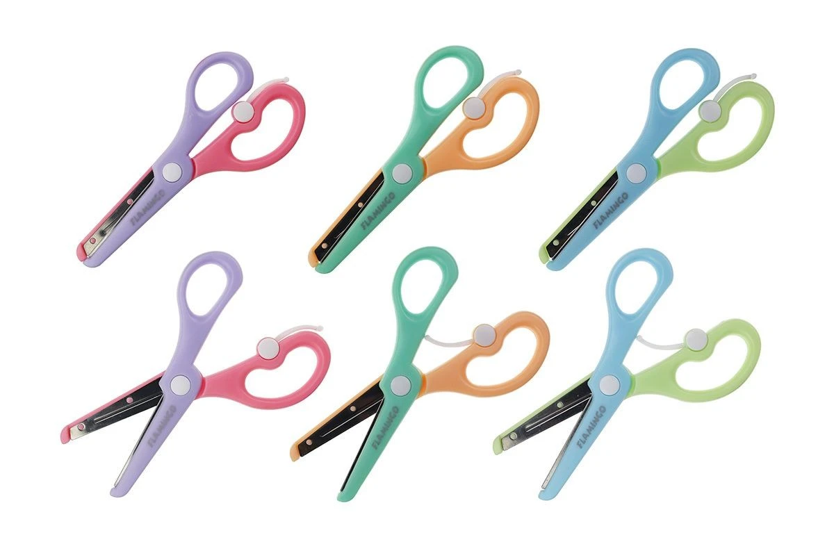 Nożyczki dedykowane najmłodszym użytkownikom. Wyposażone w odbojnik, który powoduje, że ostrza po każdym zaciśnięciu wracają do pozycji otwartej.