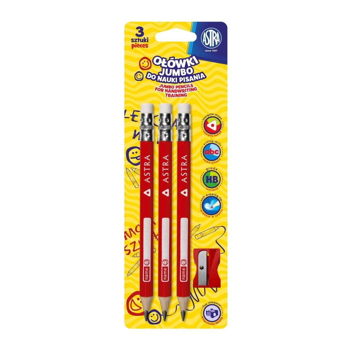 – ołówek grafitowy z gumką– idealny do nauki pisania– trójkątny przekrój prawidłowo kształtujący układ dłoni– rozmiar Jumbo– miękki grafit– twardość HB– w zestawie 3 ołówki z gumką i temperówka EAN: 5901137140810Kod Producenta: 206119005seria: do nauki pisaniaTwardość: HB.
