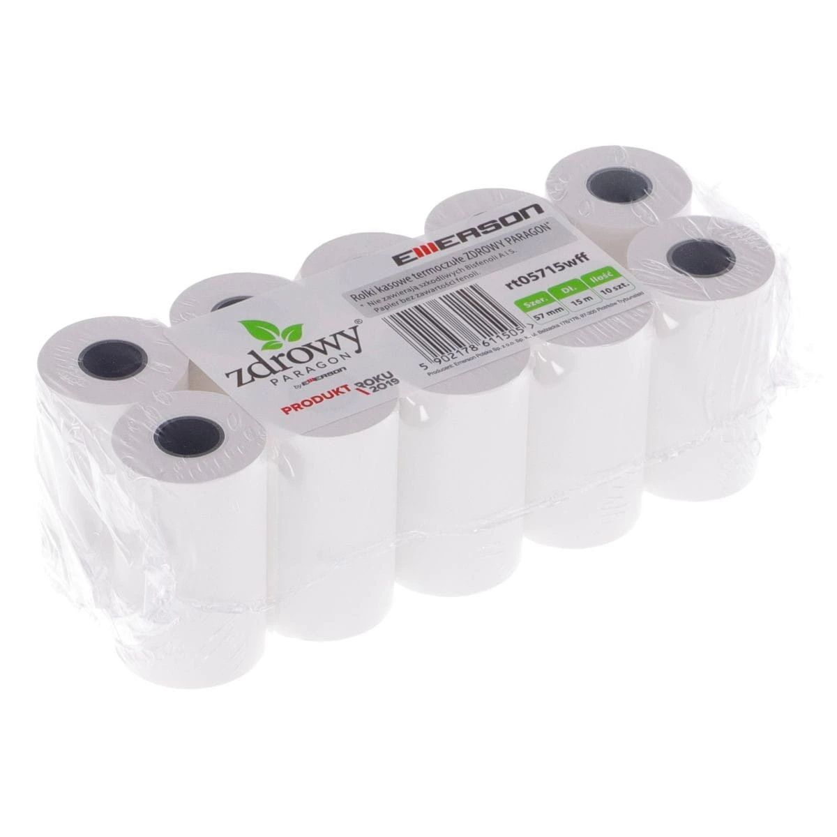 - rolki terminczne produkowane są z papieru termoczułego o gramaturze 50 g/m? +/-6g- producent papieru udziela gwarancji trwałości wydruku do 6 lat - typowe zastosowanie rolek termicznych: kasy, bankomaty, telefaksy- najwyższa jakość rolek Emerson zapewnia komfort pracy i bezpieczeństwo użytkowników- rolki pakowane są w folię termokurczliwą, zapewniającą wysoką estetykę i trwałość produktu długość [m]: 15EAN: 5902178611505Kod Producenta: rt05715wkffSzerokość [mm]: 57.