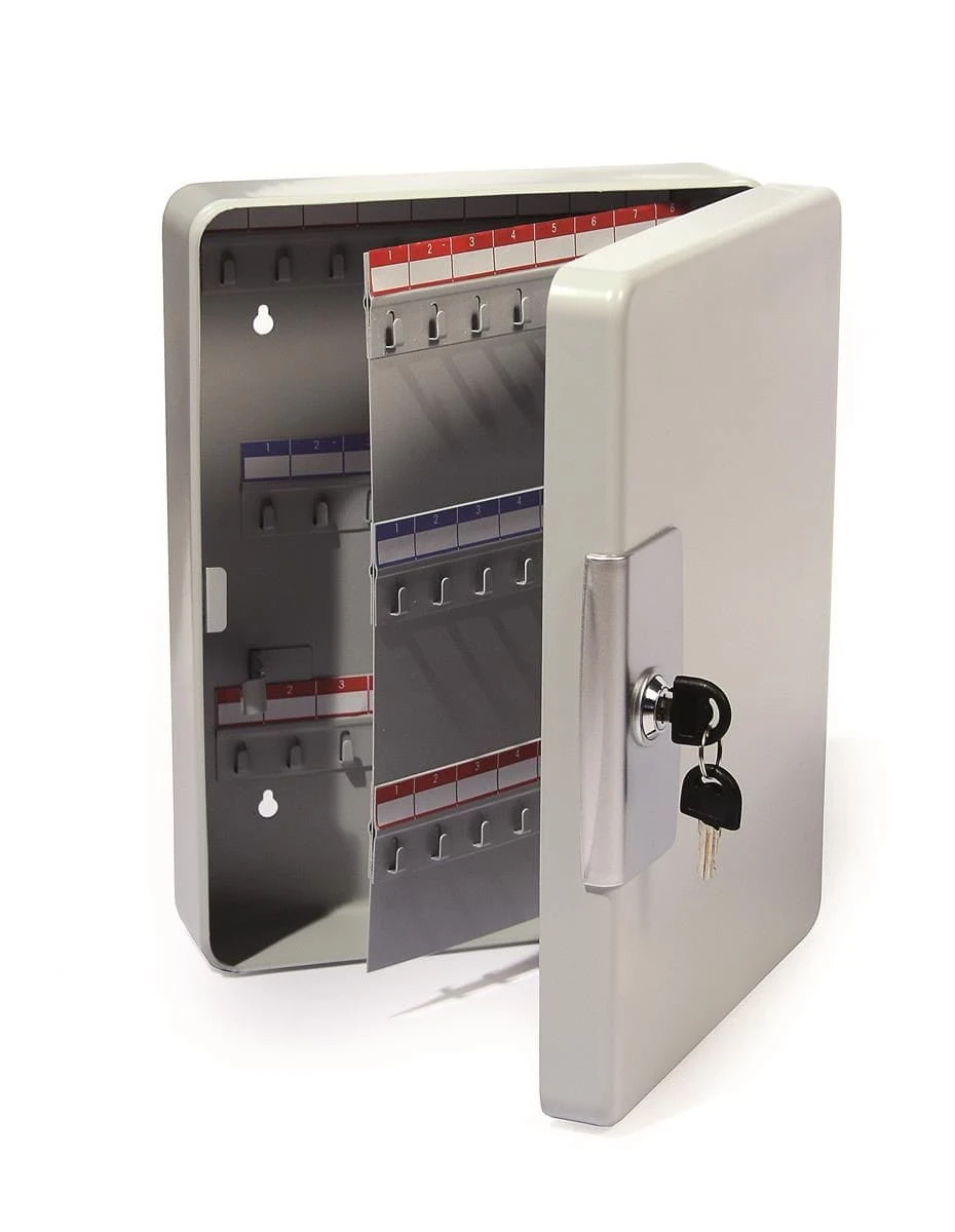 Szafka HF300C-100K, metalowa szafka na klucze, kolor szary, 100 miejsc na klucze, zamek na klucz, w komplecie 100 zawieszek na klucze, wymiary: 300x230x78 mm, EAN: 5903069002419Kod Producenta: 606069Kolor: szarySurowiec: metalwymiar1 [mm]: 300wymiar2 [mm]: 230wymiar3 [mm]: 78.