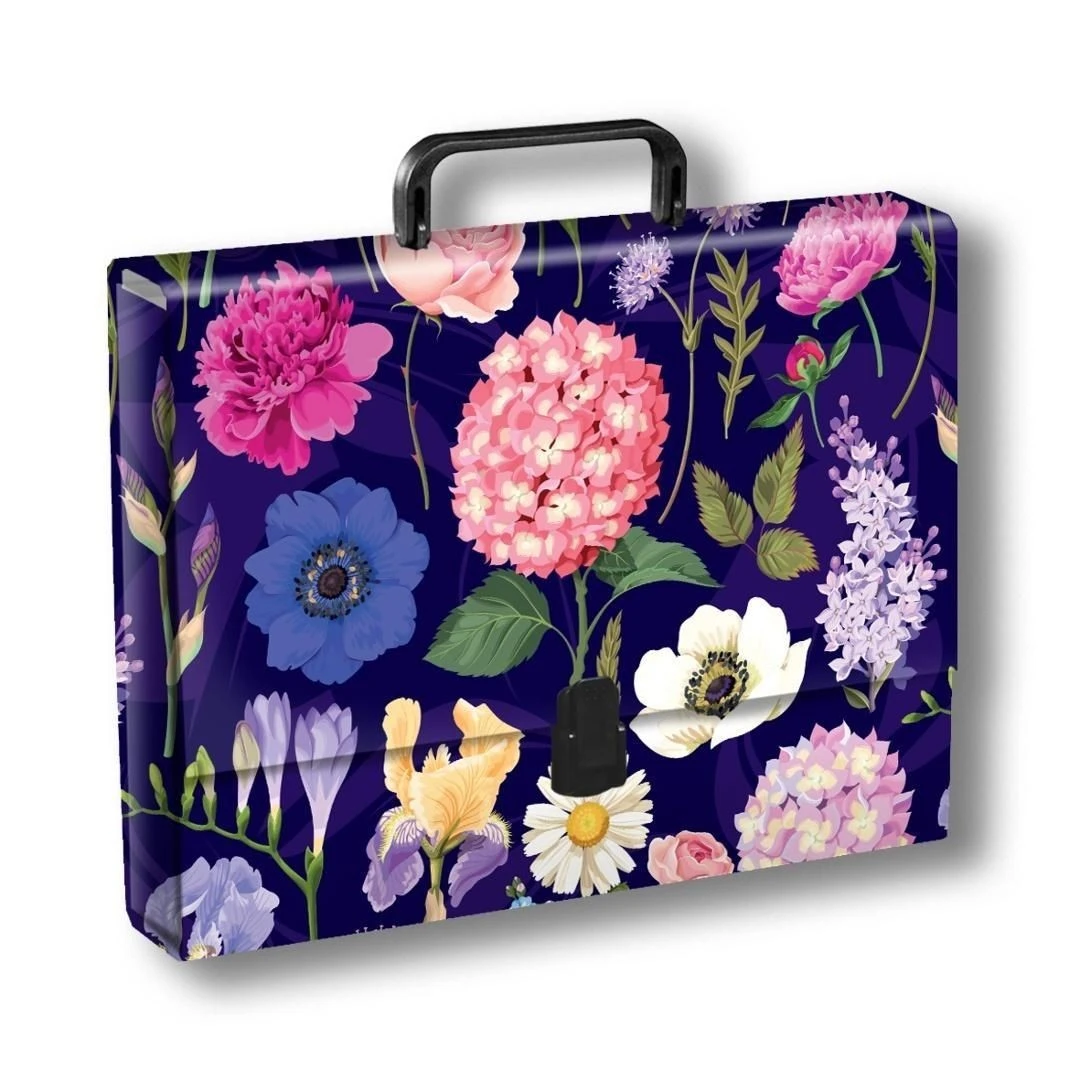 Teczka A4 z rączką Kwiaty polskie hortensja na ciemnym tle PENMATE EAN: 5906910836737Format: A4Kod Producenta: TT9415Kolekcja: KWIATY POLSKIE T0124Kolor: mixRodzaj zamknięcia: na zatrzaskseria: HORTENSJA na ciemnym tleSurowiec: tektura.