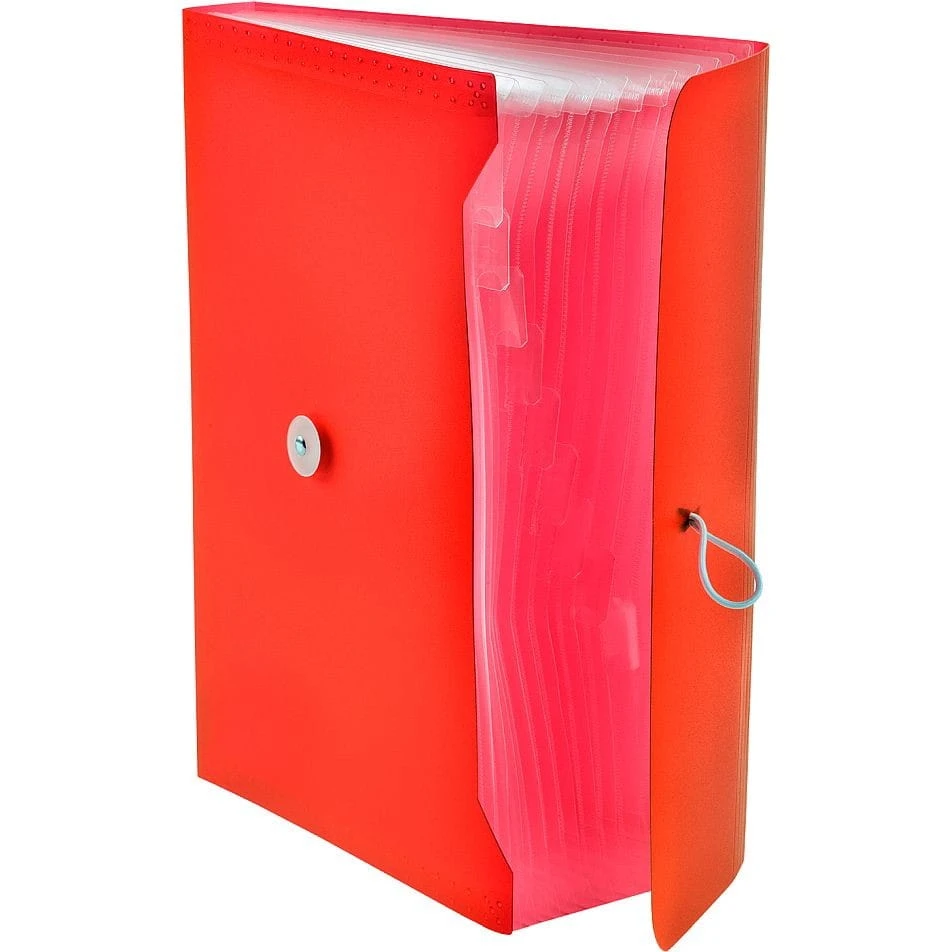 Teczka harmonijkowa PP z gumką, mieszcząca format A4. Teczka posiada 13 przegród.
