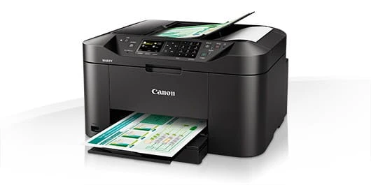 Wszechstronna drukarka, skaner, kopiarka i faks do domowych biur, w których liczy się wysokiej jakości druk w trybie monochromatycznym i kolorowym, charakteryzujący się niskim kosztem w przeliczeniu na stronę. Dzięki dużej kasecie na 250 arkuszy i automatycznemu podajnikowi dokumentów na 50 arkuszy urządzenia Canon serii MAXIFY MB2150 wykonują imponujące wydruki z żywymi kolorami i wyraźnym tekstem przy użyciu odpornych na markery i tarcie atramentów DRHD. Urządzenie Canon serii MAXIFY MB2150 drukuje w formacie A4 z dużą szybkością (19 obr./min w trybie monochromatycznym i 13 obr./min w trybie kolorowym), a czas wydruku pierwszej strony (FPOT) wynosi zaledwie 6 sekund.