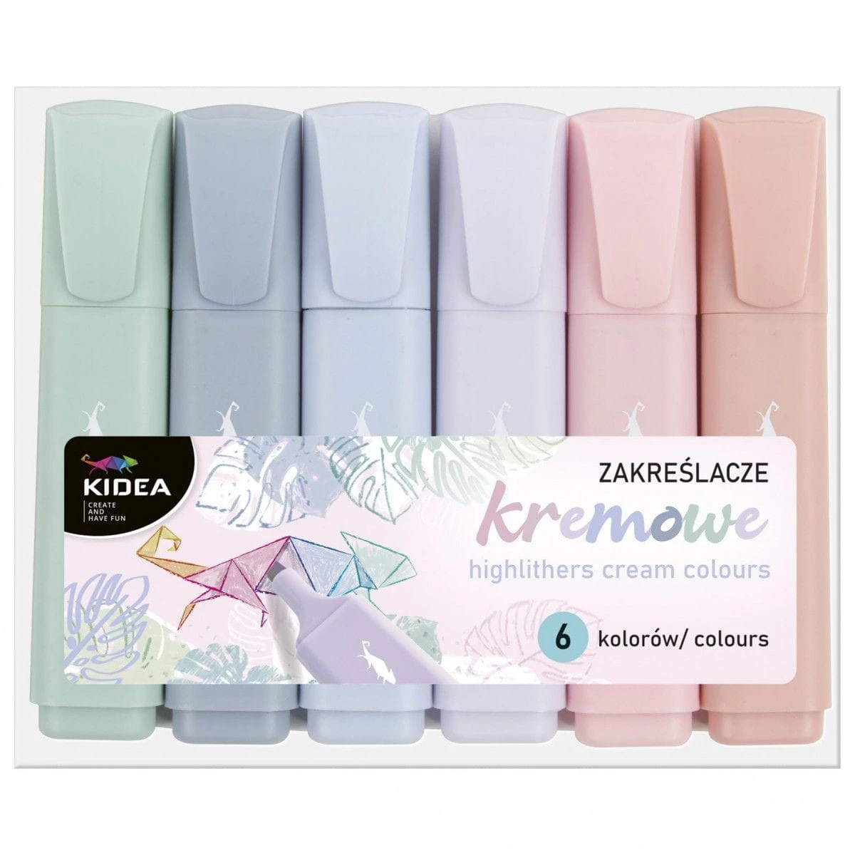 Zakreślacze w 6 stonowanych, kremowych kolorach: zielonym, niebieskim, błękitnym, fioletowym, różowym i brzoskwiniowym. Ścięty kształt końcówki pozwala zarówno na podkreślanie ważnego tekstu, jak i wykonanie bardziej precyzyjnych detali i notatek.