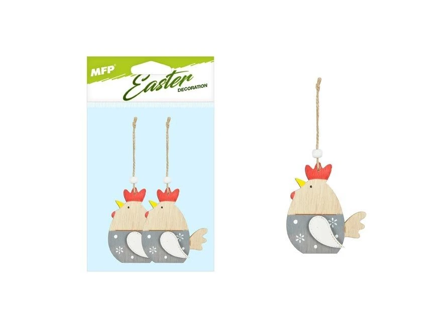 Kura zawieszka 2 szt./9cm szara drewniana Dekoracja wielkanocna z zawieszką.