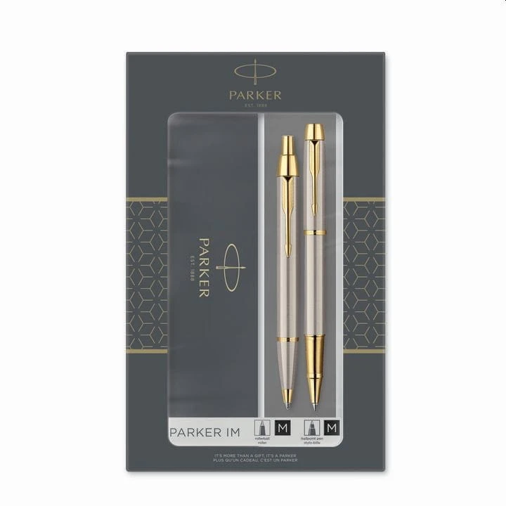 W zestawie: pióro kulkowe i długopis IM Brushed Metal ze złotymi wykończeniami