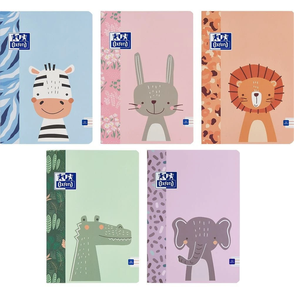 Kolekcja zeszytów Oxford Kids w zupełnie nowej odsłonie - połączenie wesołych zwierzaków i prostych, kolorowych wzorów. Poznaj 5 nowych zwierzaków Kids: zebrę, lwa, słonia, królika i krokodyla.