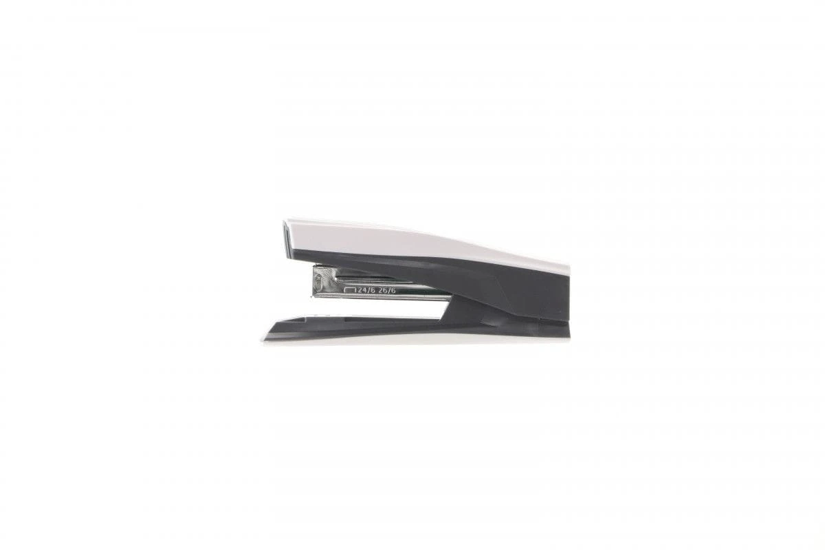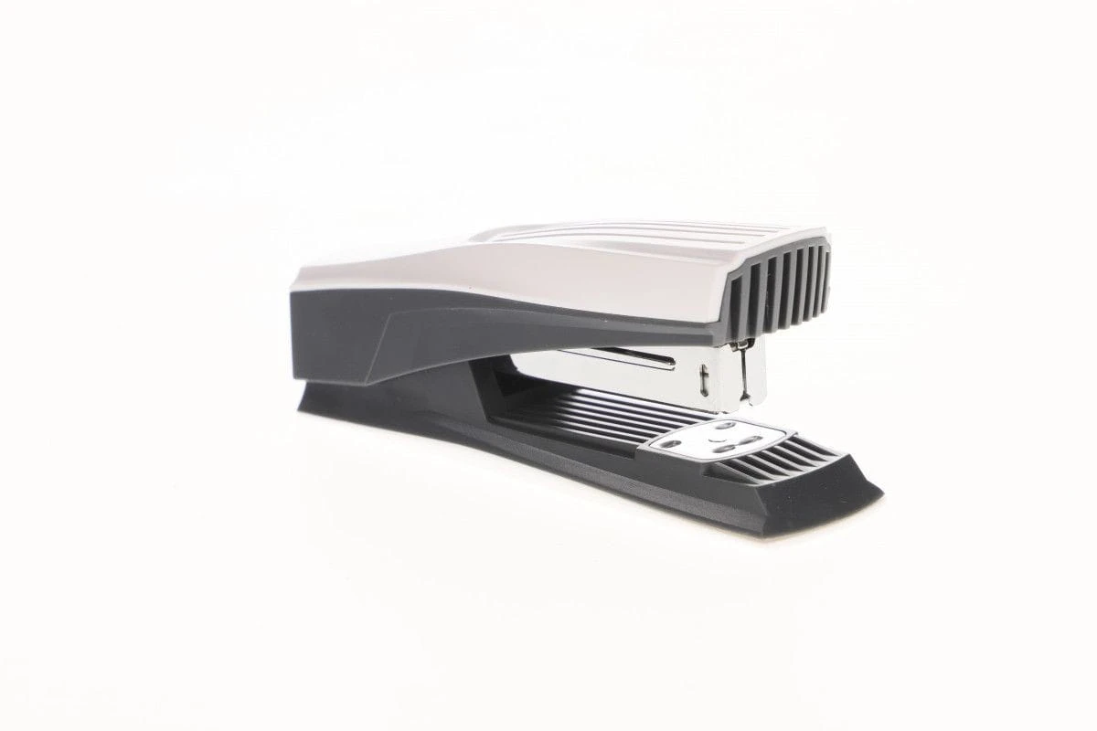 Zszywacz w obudowie z tworzywa sztucznego, części mechaniczne metalowe. Zszywanie otwarte/zamknięte.